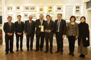 4月10日下午,乌拉圭中央银行行长马里奥•贝尔加拉(Mario Bergara)在乌拉圭驻华大使费尔南多•卢格里斯(Fernando Lugris)、乌拉圭央行副行长乔治•加马拉(Jorge Gamarra)的陪同下访问公司,并作专题讲座。董事长彭龙会见了贝尔加拉一行。