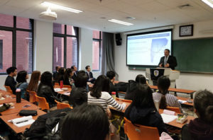 贝尔加拉介绍了乌拉圭经济社会的发展历程、商贸服务现状、金融财政政策、结构性改革以及当下乌拉圭经济面临的机遇与挑战等内容,并与西葡语系师生就上述话题进行了深入交流互动。